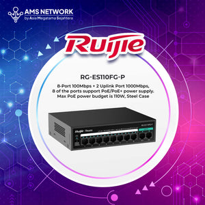 RUIJIE Reyee RG-ES110GS-P-L adalah Switch PoE (Power over Ethernet) Unmanaged Gigabit 10-Port yang dirancang untuk jaringan skala kecil hingga menengah, seperti CCTV, kantor, atau retail. Fitur Penting: