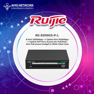 RUIJIE Reyee RG-ES110GS-P-L adalah Switch PoE (Power over Ethernet) Unmanaged Gigabit 10-Port yang dirancang untuk jaringan skala kecil hingga menengah, seperti CCTV, kantor, atau ritel. Fitur Penting: