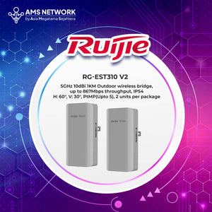 Ruijie RG-EST310 V2 adalah perangkat wireless bridge (jembatan nirkabel) 5 GHz yang dirancang khusus untuk membangun koneksi jaringan nirkabel jarak jauh yang stabil hingga 1 kilometer di lingkungan luar ruangan (outdoor). Perangkat ini sangat ideal untuk solusi jaringan CCTV (surveillance) dan aplikasi jaringan jarak jauh lainnya.