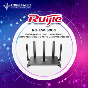 Ruijie RG-EW1300G adalah router Gigabit dual-band yang menawarkan koneksi Wi-Fi 5 (802.11ac Wave 2) yang handal dengan fitur Mesh, ditujukan untuk pengguna rumahan atau kantor kecil yang mencari peningkatan dari jaringan Fast Ethernet lama. RG-EW1300G adalah router AC1300 yang menyediakan kinerja Wi-Fi superior di kelas entry-level Gigabit. Produk ini menggabungkan kecepatan nirkabel dual-band dengan koneksi kabel Gigabit penuh, menjadikannya pilihan solid untuk streaming HD dan online gaming. Fitur Penting dari produk ini adalah:
