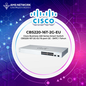 CBS220: Menunjukkan seri produk, yaitu Cisco Business 220 Series. Ini adalah lini switch "pintar" (smart) yang menjadi jembatan antara switch unmanaged dan fully managed.