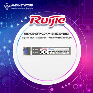 NIS-GE-SFP-20KM-SM1310-BIDI adalah modul SFP (Small Form-factor Pluggable) Gigabit transceiver dari Ruijie Reyee. Modul ini adalah pasangan pelengkap dari modul TX1550/RX1310, dan dirancang untuk koneksi jarak jauh menggunakan teknologi Bi-Directional (BIDI). Fungsi utamanya yaitu untuk menyediakan koneksi jaringan jarak jauh yang stabil dan efisien, khususnya di mana keterbatasan kabel menjadi isu.