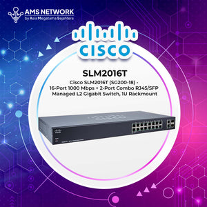 Cisco SLM2016T (juga dikenal sebagai Cisco SG200-18) adalah Smart Switch Gigabit 18-Port yang dirancang untuk jaringan bisnis kecil dan menengah. Produk ini adalah perangkat yang berada di antara switch yang tidak terkelola (unmanaged) dan switch yang terkelola penuh (fully managed), menawarkan fitur manajemen penting dengan harga yang lebih terjangkau dan kemudahan penggunaan. Berikut Spesifikasinya: