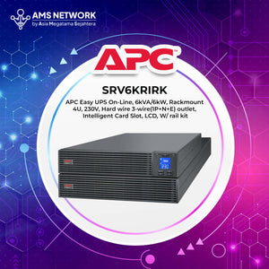 APC Easy UPS On-Line SRV6KRIRK adalah unit Uninterruptible Power Supply (UPS) berkapasitas tinggi yang dirancang khusus untuk lingkungan IT kritis, seperti pusat data kecil, ruang server, dan peralatan jaringan.